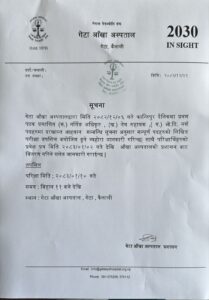 I am very happy to lead a non-profit humanitarian organization having the motto "Let there be sight" which is purely dedicated to improve eye health in the community. I am thankful to the people who inspired and elected me as the president of Nepal Netrajyoti Sangh, Kailali branch, and chairperson of the management committee of Geta Eye Hospital, Geta Kailali. I will put my best to enhance the quality of service provided by tertiary-level Geta Eye Hospital, Secondary Eye hospitals, and Primary Eye Centers...